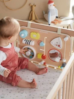 - 3 boutons lumineux : Bébé appuie pour découvrir les animaux, les chiffres, les couleurs et déclencher des chansons amusantes.