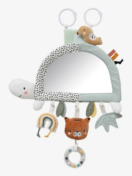 Une tortue aux 1000 surprises que bébé va aimer toucher, secouer, mordiller ! Vous pouvez selon vos besoins la poser sur une surface ou l’attacher au siège d’une voiture grâce aux différents systèmes de pose et de fixation. Des textures, des couleurs, des petits bruits… les sens des petits seront tendrement stimulés !